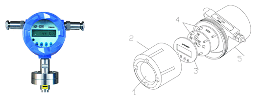 外殼材料:壓鑄鋁 1,視窗 2,前蓋 3,顯示液晶和按鍵