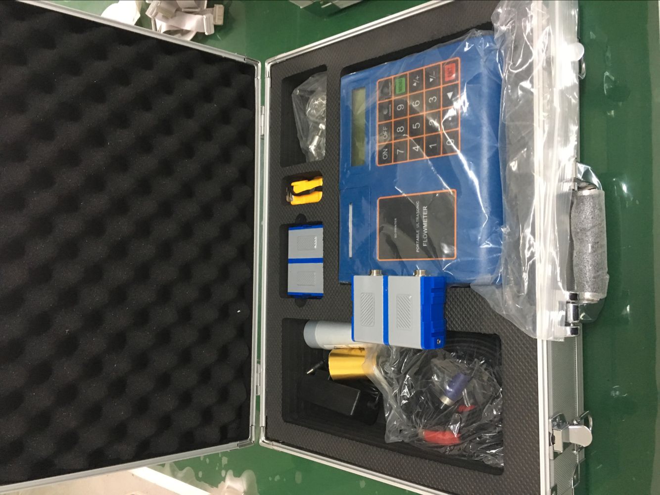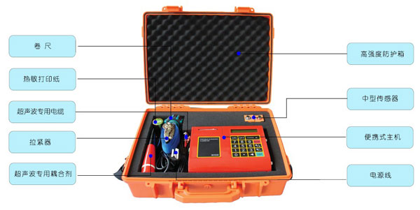 便攜式超聲波流量計探頭隨儀表成對提供,實流標定后出廠。所有標定數據、零偏及探頭參數全部儲存在探頭內存里,與主機連接后,探頭將數據發送給主機,主機會自動識別并優化工作。