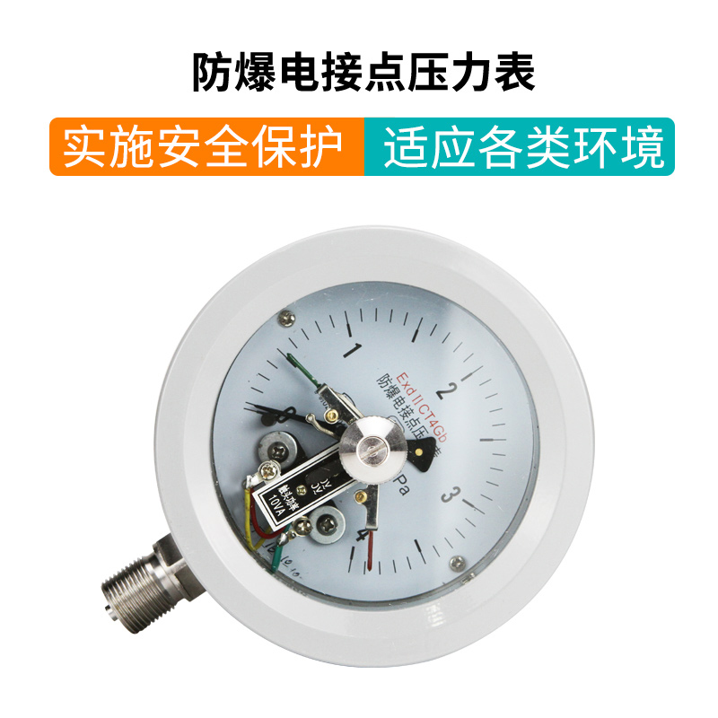防爆電接點壓力表的工作原理是基于檢測元件(測量系統中的彈簧管)的彈性變形,通過機械傳動使之帶動電接點組中的觸頭產生相應的動作(閉合或斷開)以使控壓系統中的電路得以接通或斷開,從而實現自動控制報警和現場指示的目的。